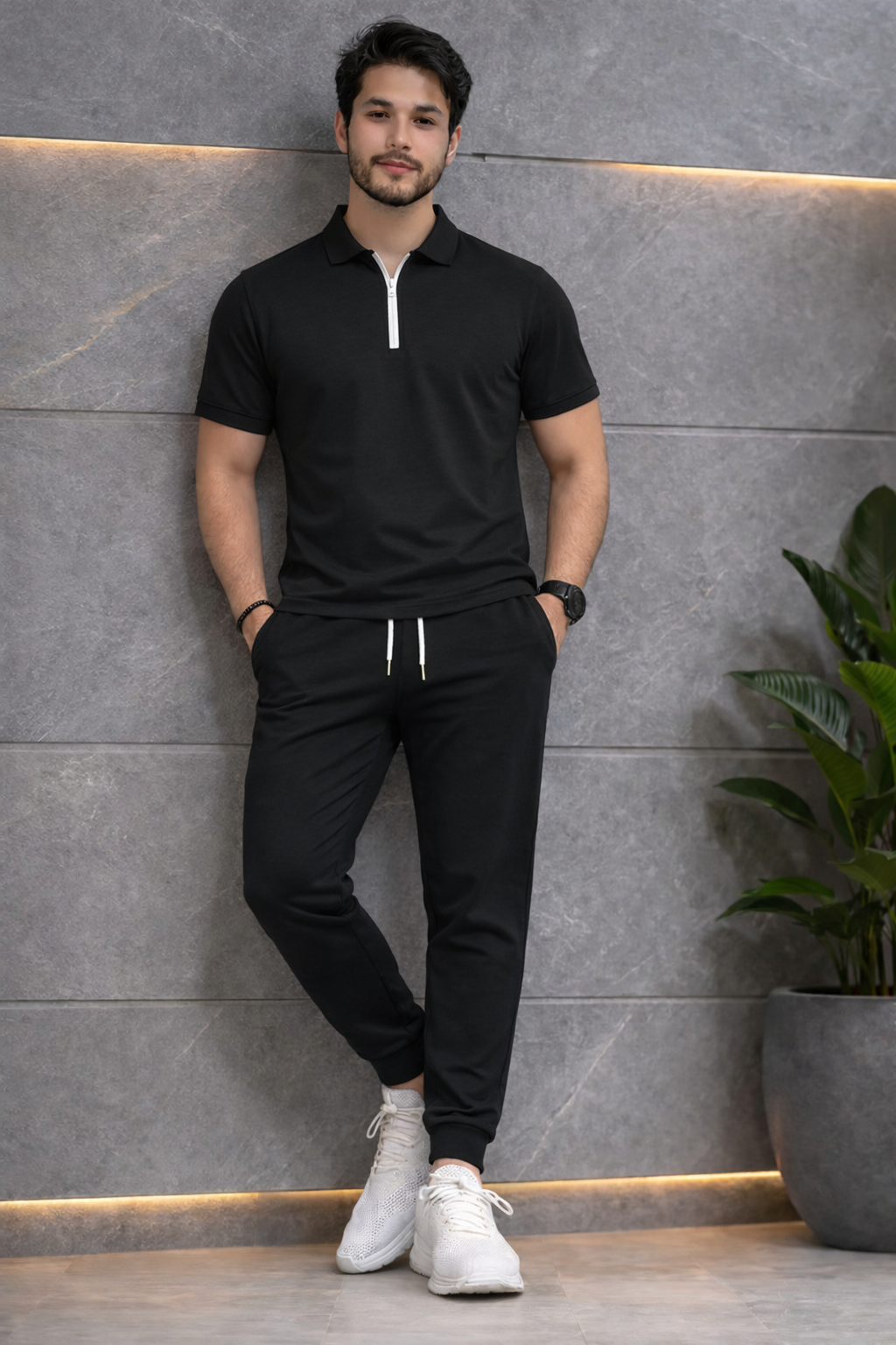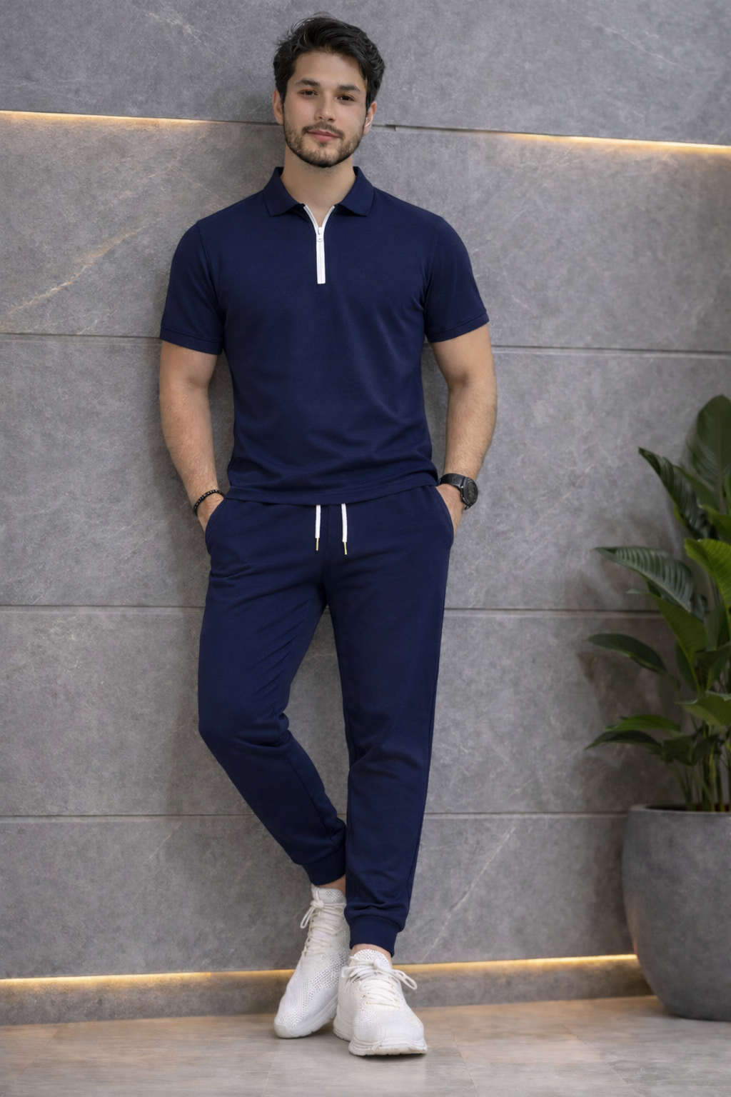 Mens Premium Dry Fit Zipper Shirt + Trouser Tracksuit Set